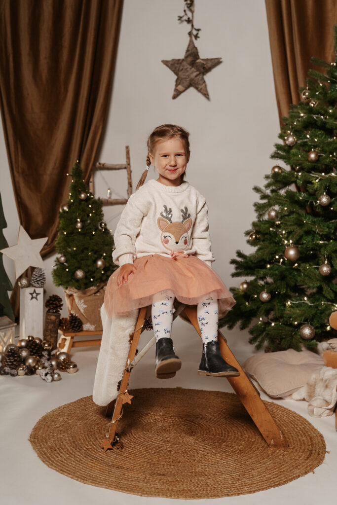 - Süße Requisiten wie Weihnachtsmützen, Schlitten, Schaukelpferd, uvm…
